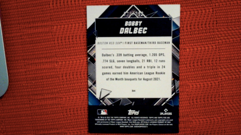2022 Topps Fire Orange #34 Bobby Dalbec 23/299