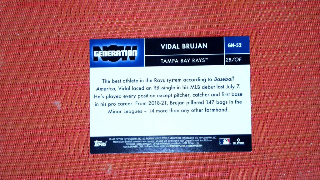 This is a nice example of a 2022 Topps #GN-52 Vidal Brujan Generation Now.