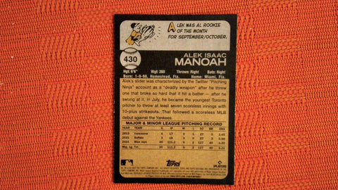 This is a nice example of a 2022 Topps Heritage #430 Alek Manoah .