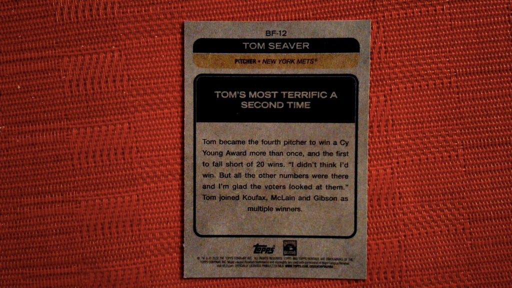 This is a nice example of a 2022 Topps Heritage #BF-12 Tom Seaver Baseball Flashbacks.