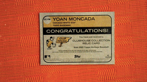 This is a nice example of a 2022 Topps Heritage #CC-YM Yoan Moncada Clubhouse Collection Relics.