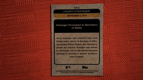 This is a nice example of a 2022 Topps Heritage #NF-8 Henry Kissinger Begins Term as Secretary Of State News Flashbacks.
