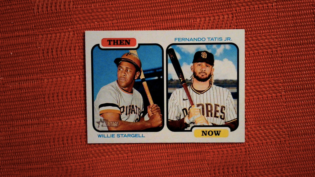 This is a nice example of a 2022 Topps Heritage #TAN-ST Willie Stargell / Fernando Tatis Jr. Then and Now.
