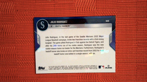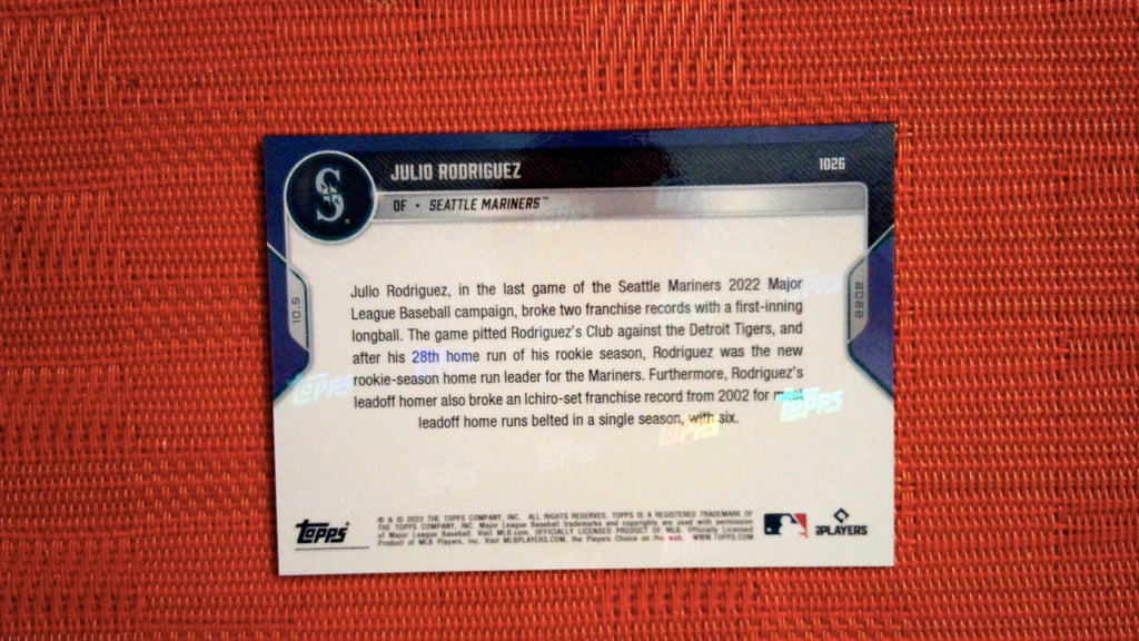This is a nice example of a 2022 Topps Now #1026 Julio Rodriguez - Sets His Club's Single-Season, Rookie HR Record .