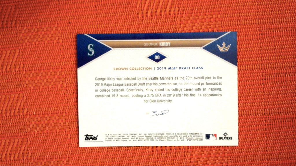 This is a nice example of a 2022 Topps x Bobby Witt Jr. Crown Collection #30 George Kirby .