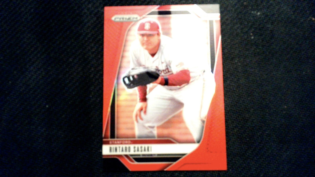 This is a nice example of a 2025 Panini Prizm #271 Rintaro Sasaki Red Prizms.