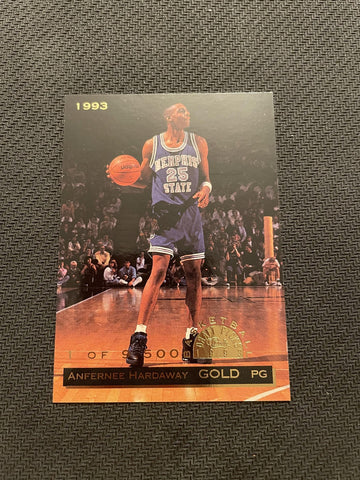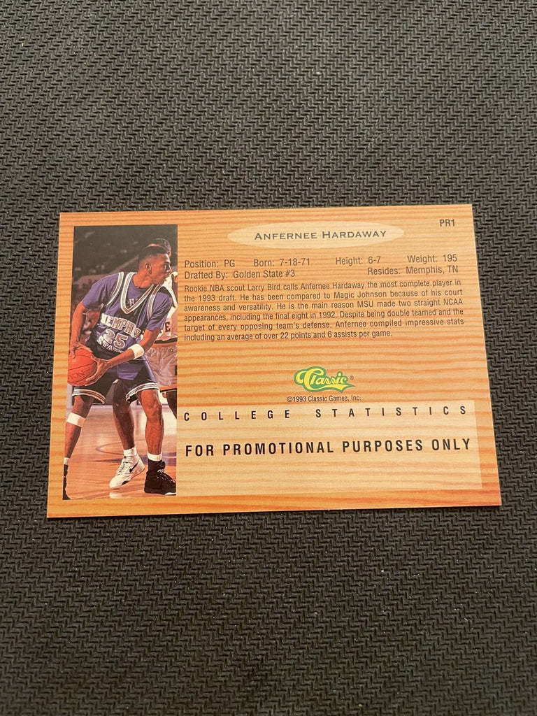 This is a nice example of a 1993 Classic Four Sport #PR1 Anfernee Hardaway Gold.