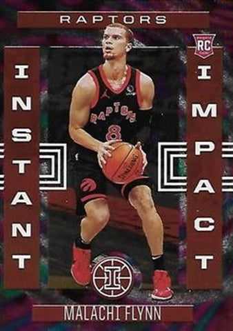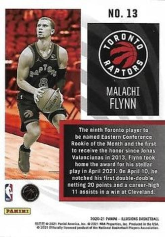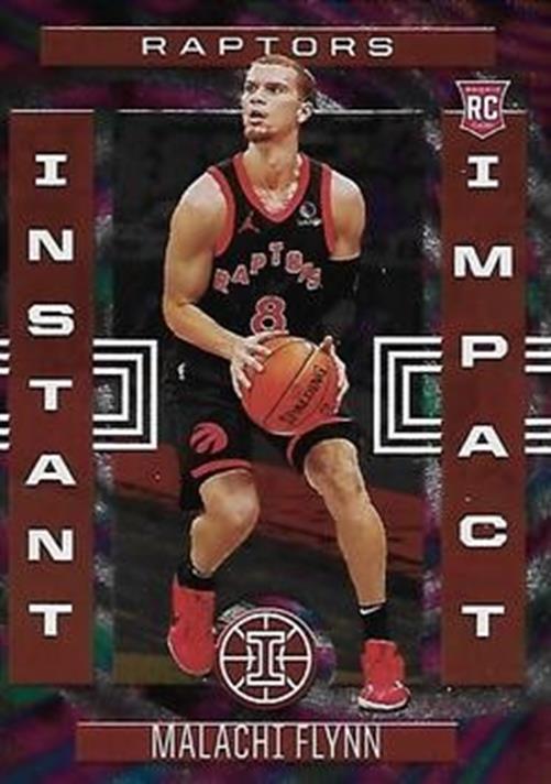 This is a nice example of a 2020-21 Panini Illusions #13 Malachi Flynn Instant Impact.