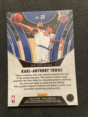 This is a nice example of a 2024-25 Panini Mosaic #22 Karl-Anthony Towns Elevate.