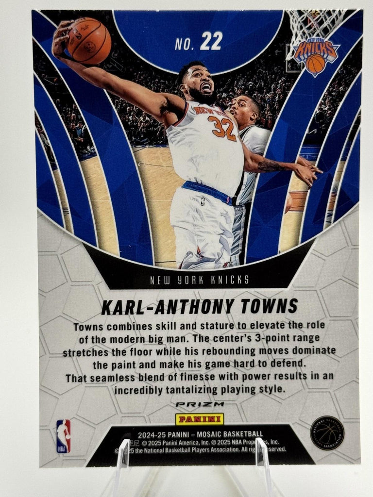 This is a nice example of a 2024-25 Panini Mosaic #22 Karl-Anthony Towns Elevate Mosaic.