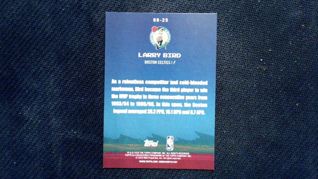 This is a nice example of a 2025-26 Topps #8B-25 Larry Bird 8-Bit Ballers Holo Foil.