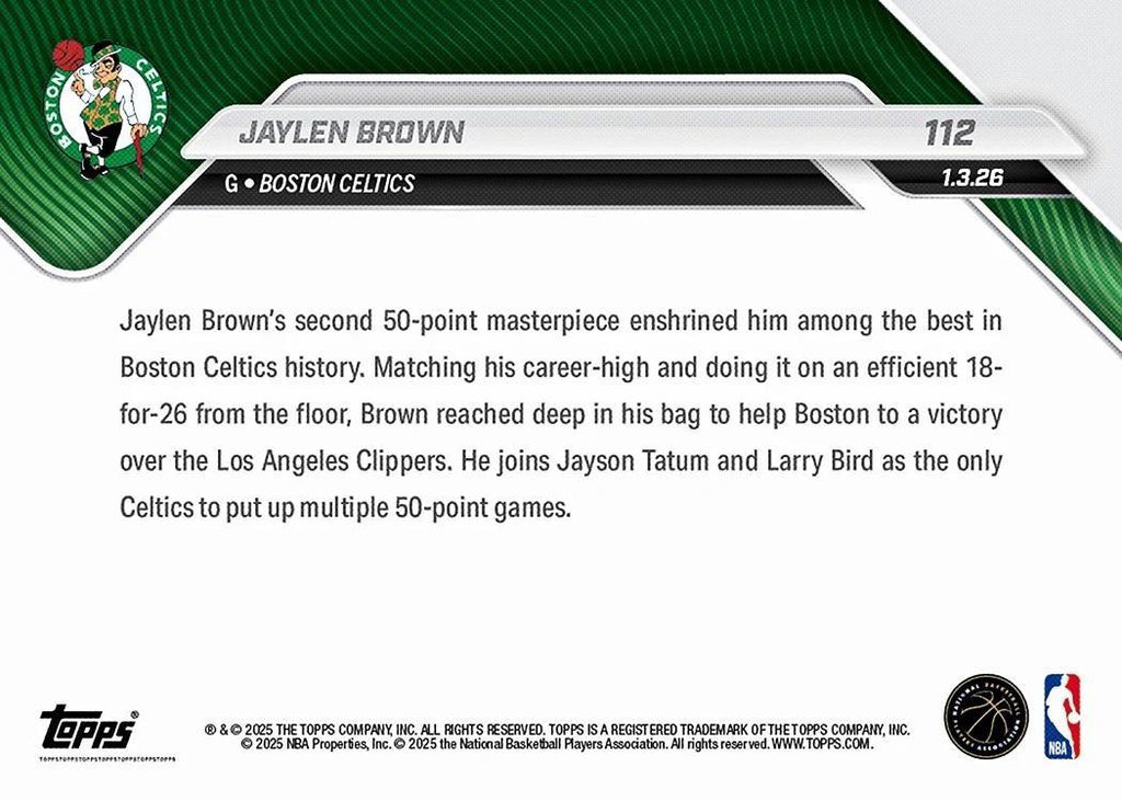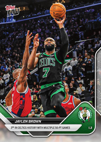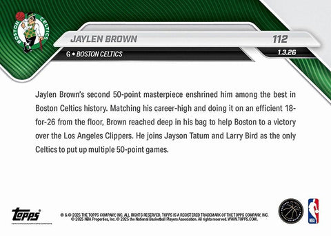 This is a nice example of a 2025-26 Topps Now #112 Jaylen Brown .
