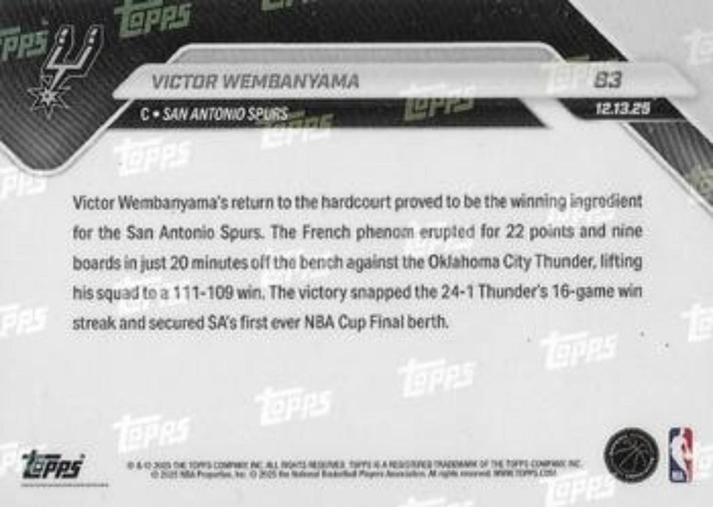This is a nice example of a 2025-26 Topps Now #83 Victor Wembanyama .