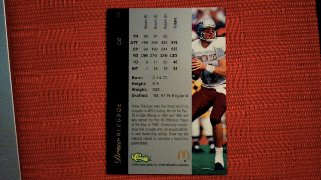1993 Classic 4 Sport McDonald's #2 Drew Bledsoe Football