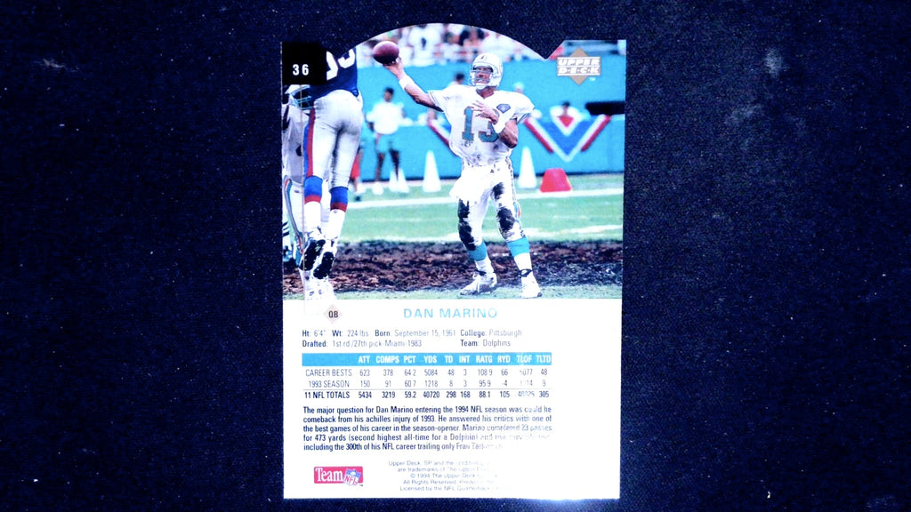 This is a nice example of a 1994 SP #36 Dan Marino Die Cut.