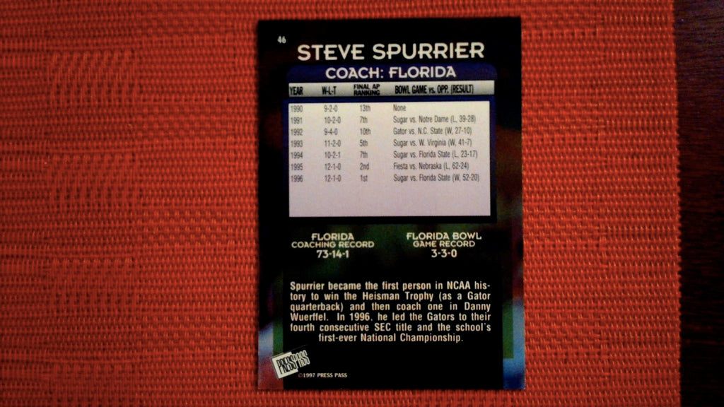 1997 Press Pass Blue #46 Steve Spurrier Football