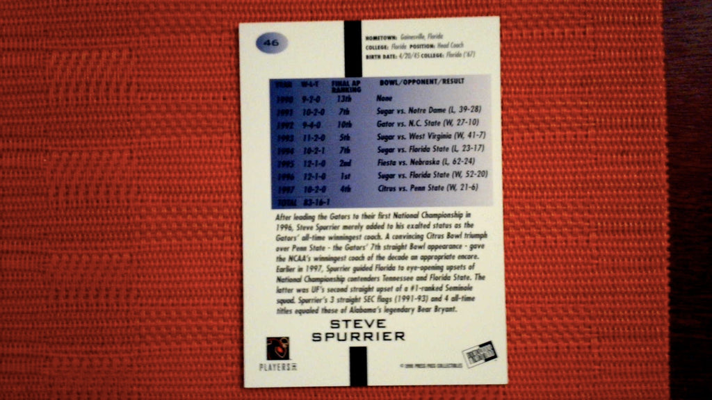 1998 Press Pass Red #46 Steve Spurrier Football