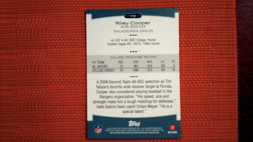 2010 Topps Platinum Rookie #116 Riley Cooper Football