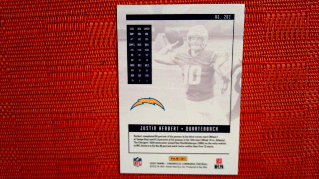 2020 Panini Chronicles Football Luminance Update Rookies #203 Justin Herbert