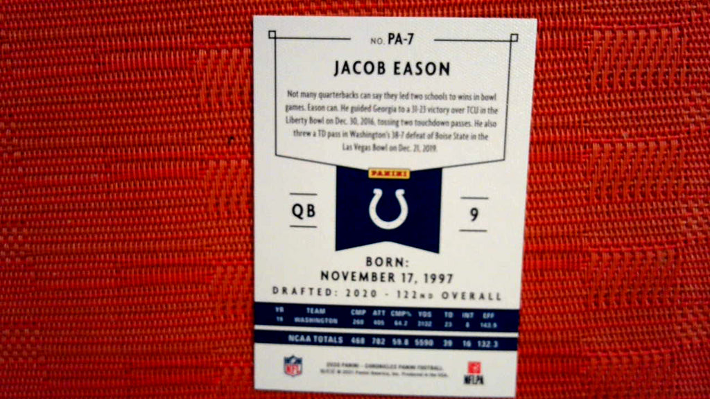 2020 Panini Chronicles Football Panini Set #PA-7 Jacob Eason