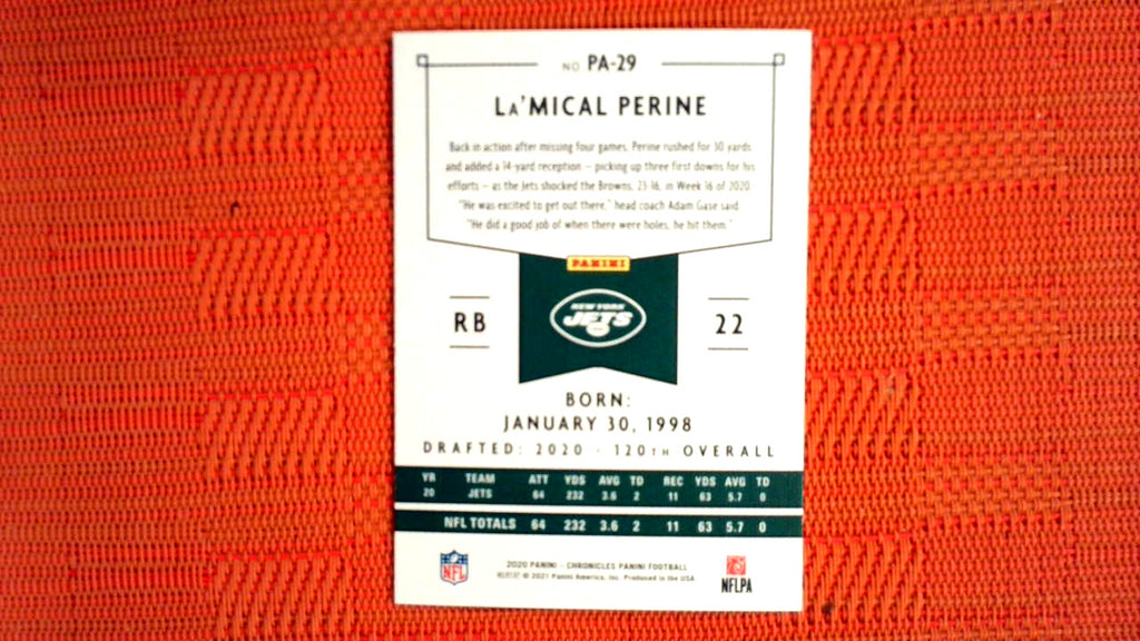 2020 Panini Chronicles Football Panini - Teal Parallel #29 La'Mical Perine