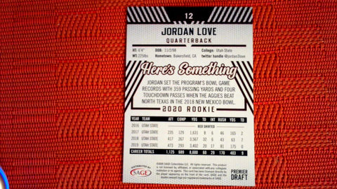 2020 SAGE HIT #12 Jordan Love RC Rookie Utah State Packers