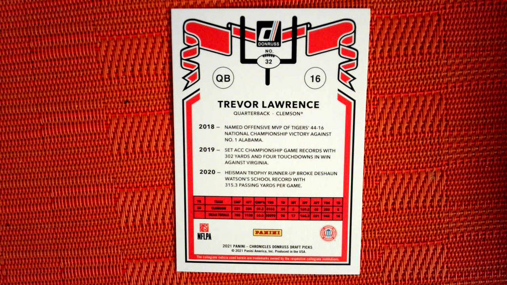 2021 Panini Chronicles Draft Picks Football #22 Trevor Lawrence Donruss Draft Picks