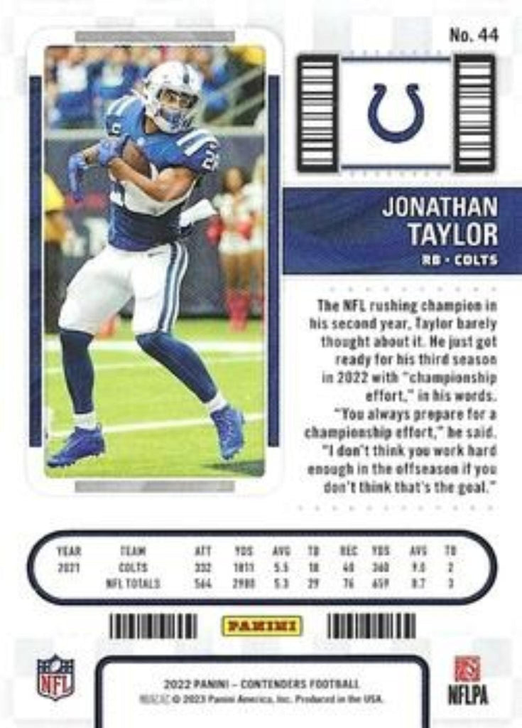 This is a nice example of a 2022 Panini Contenders #44 Jonathan Taylor .