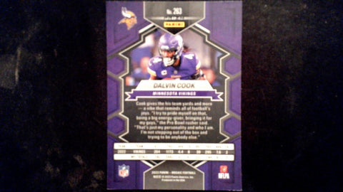 This is a nice example of a 2023 Panini Mosaic #263 Dalvin Cook Camo Pink Mosaic.