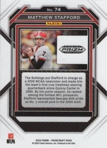 This is a nice example of a 2023 Panini Prizm Draft Picks #74 Matthew Stafford .
