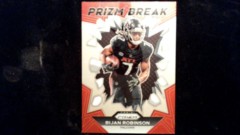 This is a nice example of a 2023 Panini Prizm #PB-8 Bijan Robinson Prizm Break.