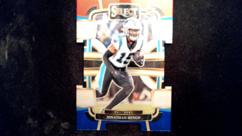 This is a nice example of a 2023 Panini Select #16 Jonathan Mingo Red and Blue Prizms Die Cuts.
