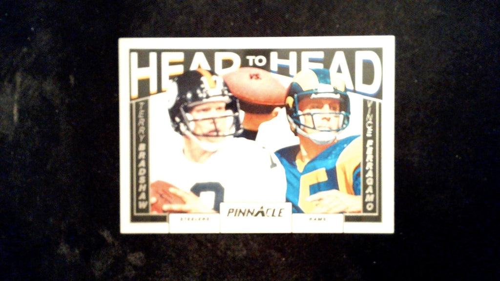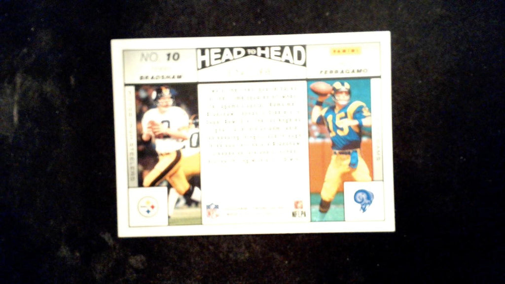 This is a nice example of a 2024 Panini Encore #10 Terry Bradshaw / Vince Ferragamo Head to Head.