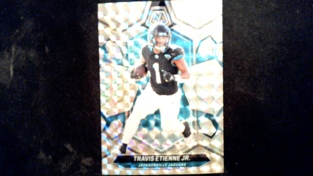 This is a nice example of a 2024 Panini Mosaic #100 Travis Etienne Jr. Honeycomb.