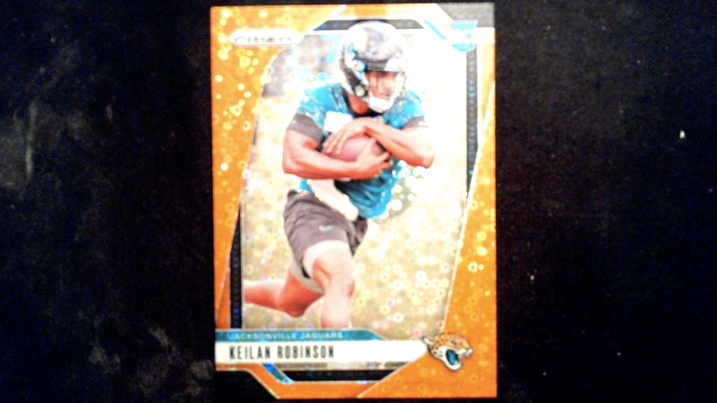 This is a nice example of a 2024 Panini Prizm #361 Keilan Robinson Orange Disco Prizm.