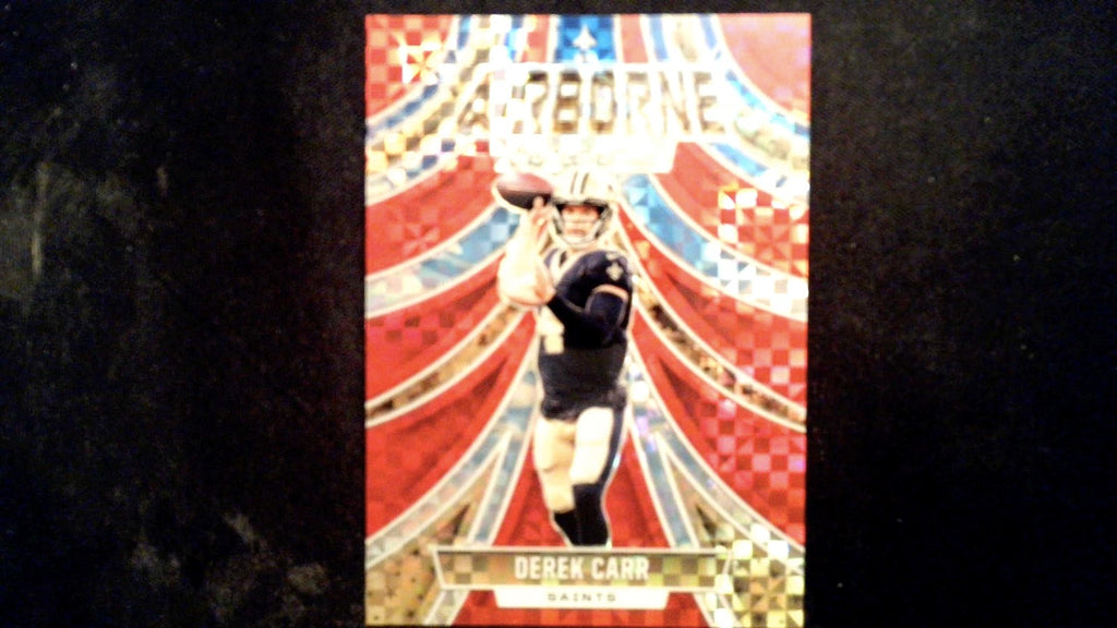 This is a nice example of a 2024 Panini Rookies & Stars #A-DCR Derek Carr Airborne Red Plaid.