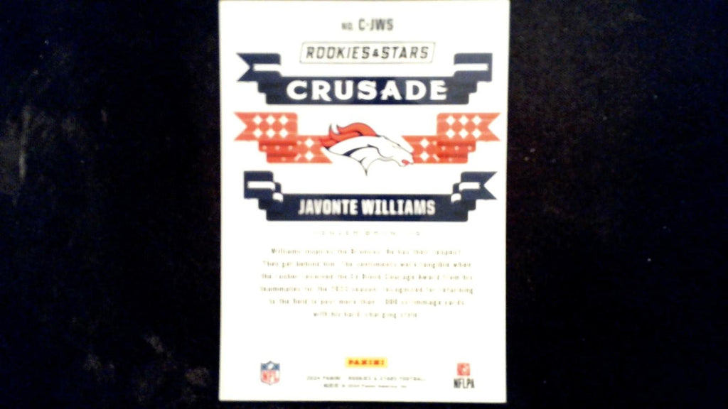 This is a nice example of a 2024 Panini Rookies & Stars #C-JWS Javonte Williams Crusade Red Plaid.
