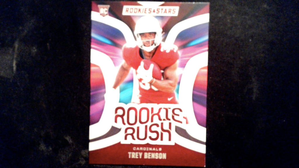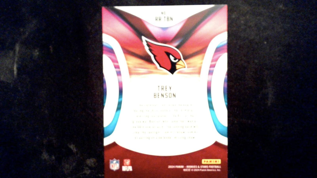 This is a nice example of a 2024 Panini Rookies & Stars #RR-TBN Trey Benson Rookie Rush.