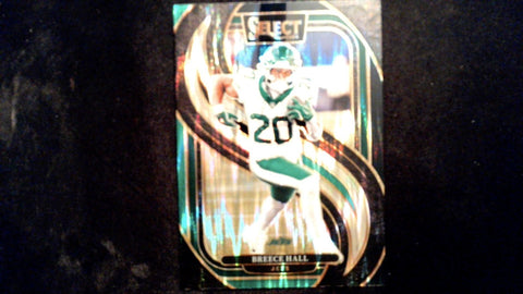 This is a nice example of a 2024 Panini Select #111 Breece Hall Black & Green Prizm Shock.