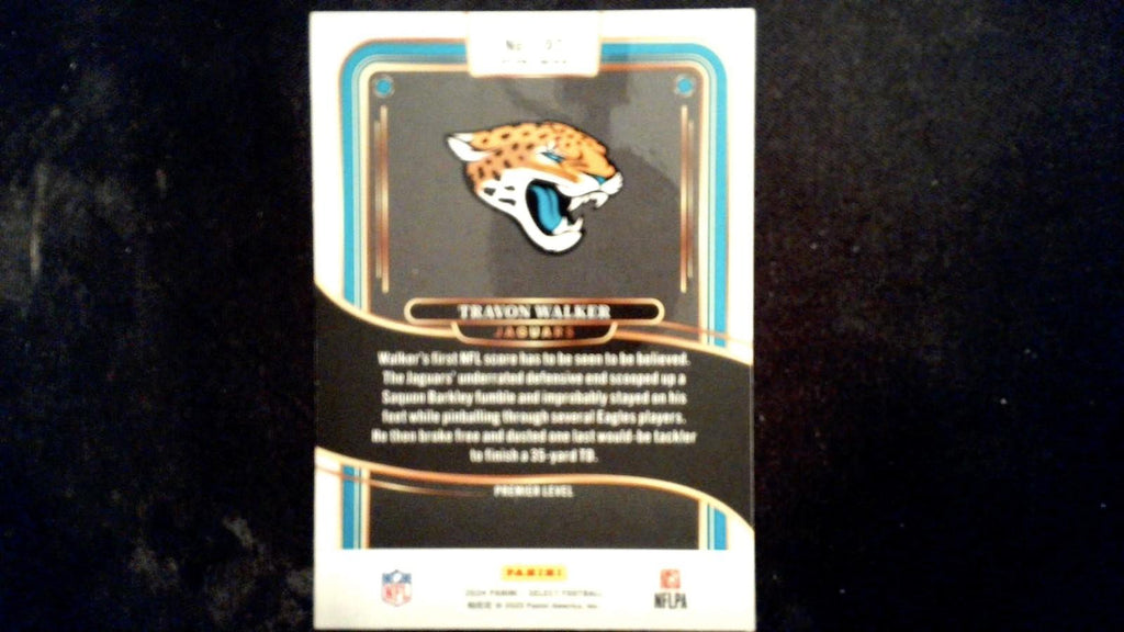 This is a nice example of a 2024 Panini Select #197 Travon Walker Black & Green Prizm Shock.