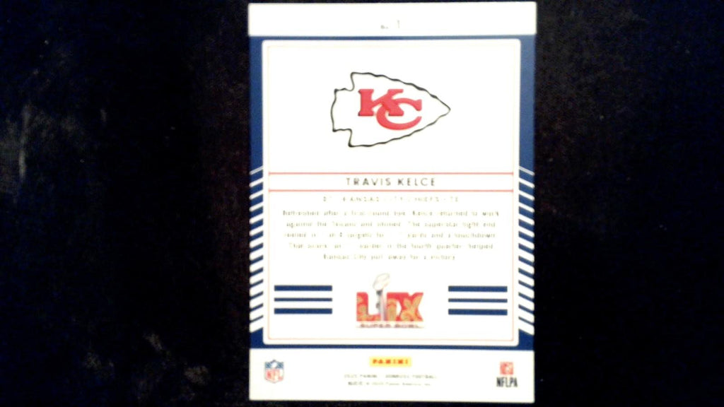 This is a nice example of a 2025 Donruss #1 Travis Kelce Road to the Super Bowl Divisional Round.