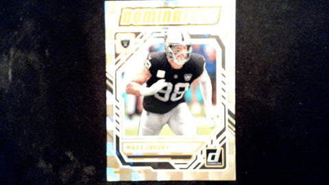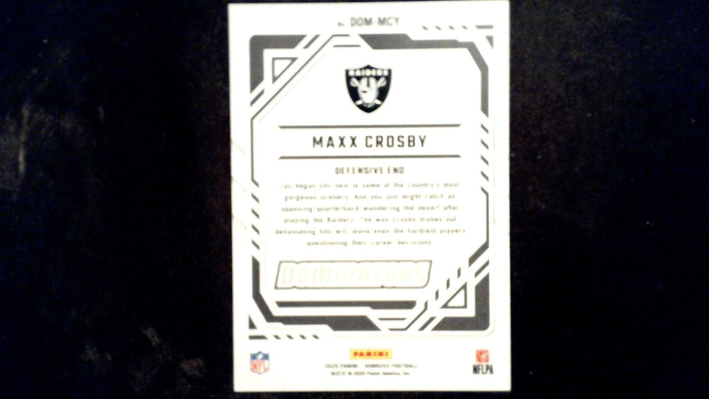 This is a nice example of a 2025 Donruss #DOM-MCY Maxx Crosby Dominators.