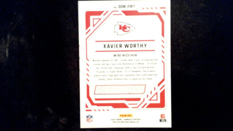 This is a nice example of a 2025 Donruss #DOM-XWY Xavier Worthy Dominators.