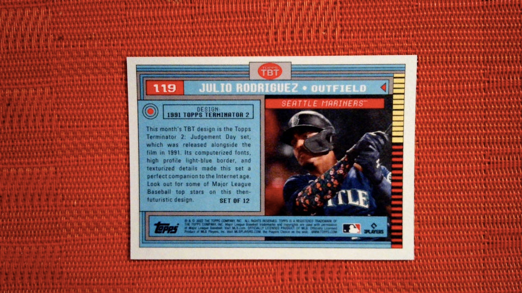 This is a nice example of a 2022 Topps Throwback Thursday #119 Julio Rodriguez .