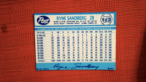 This is a nice example of a 1991 Post Cereal #16 Ryne Sandberg .