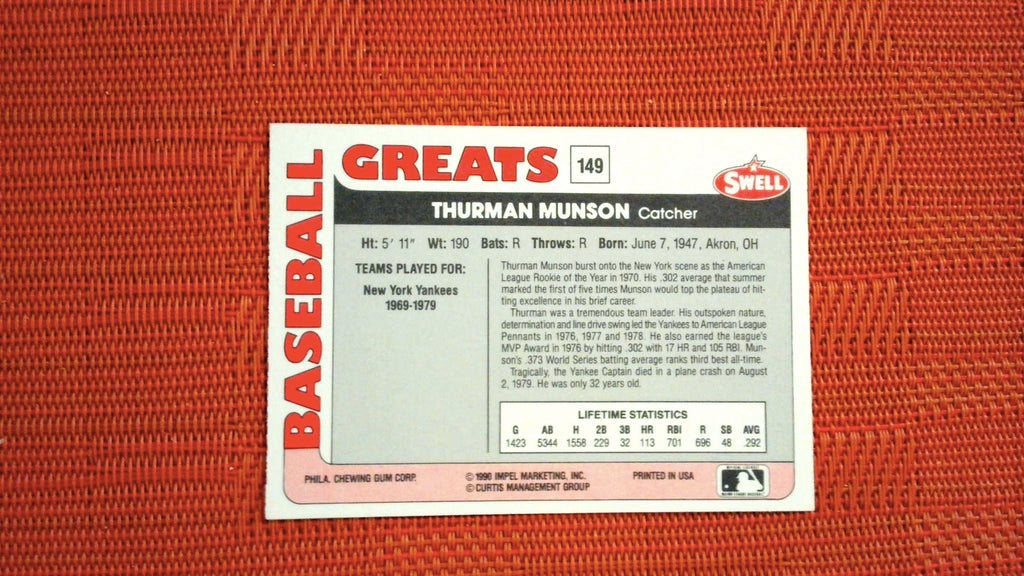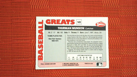 1991 Swell Baseball Greats #149 Thurman Munson Baseball