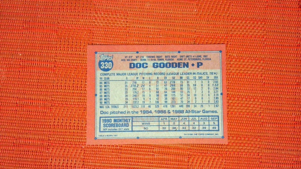 This is a nice example of a 1991 Topps #330 Doc Gooden .