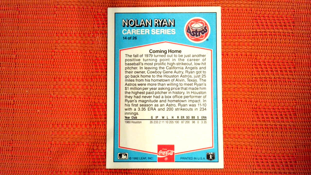 1992 Donruss Coca Cola Baseball #14 Nolan Ryan