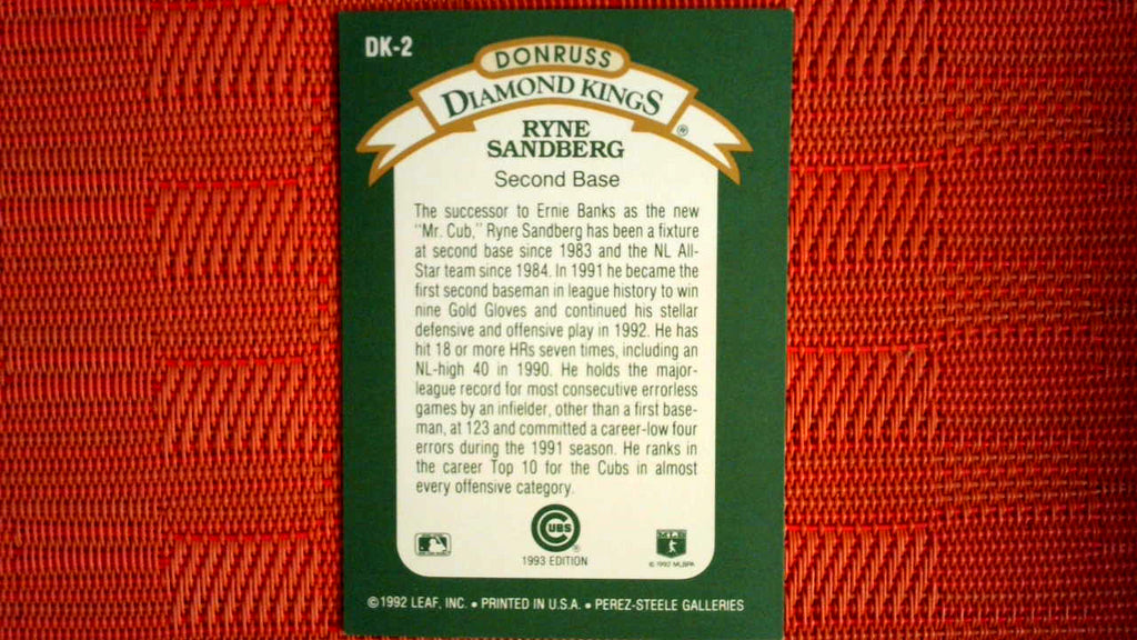 1992 Donruss Diamond Kings #DK-2 Ryne Sandberg