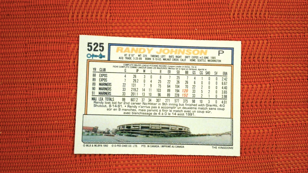 1992 O-Pee-Chee #525 Randy Johnson Baseball
